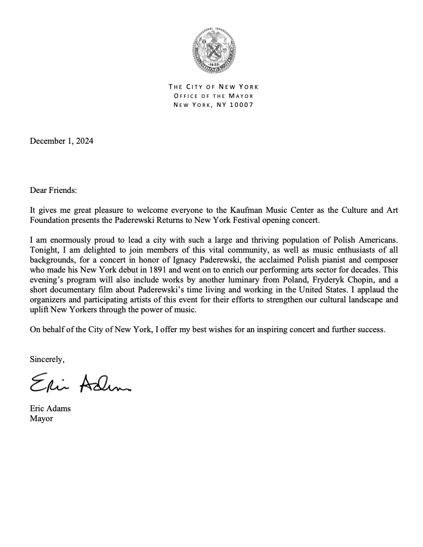 Guests appreciated the program and performers, Foundation received many letters of congratulations, including from Mayor of New York, in which Eric Adams expressed appreciation for the organizers of the concert and noted that he is proud to lead a city with such a large and dynamically developing population of Polish Americans.
